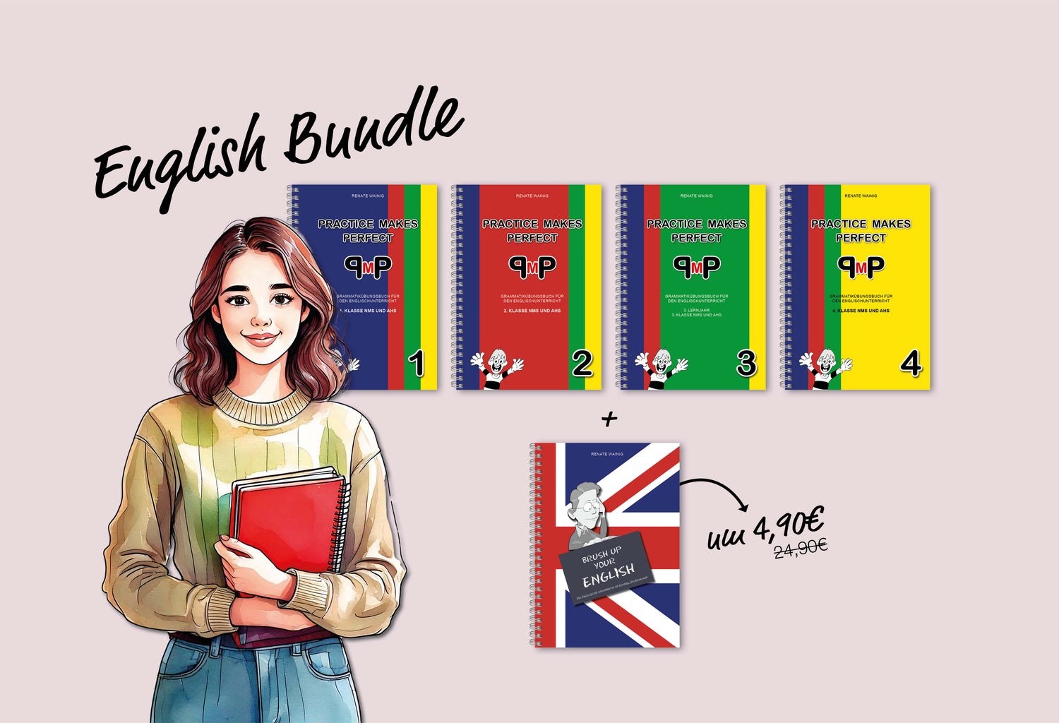 Beim Kauf von Practice Makes Perfect 1 bis 4 gibt es für alle, die noch mehr wollen, das Brush up your English um nur 4,90€ obendrauf.³